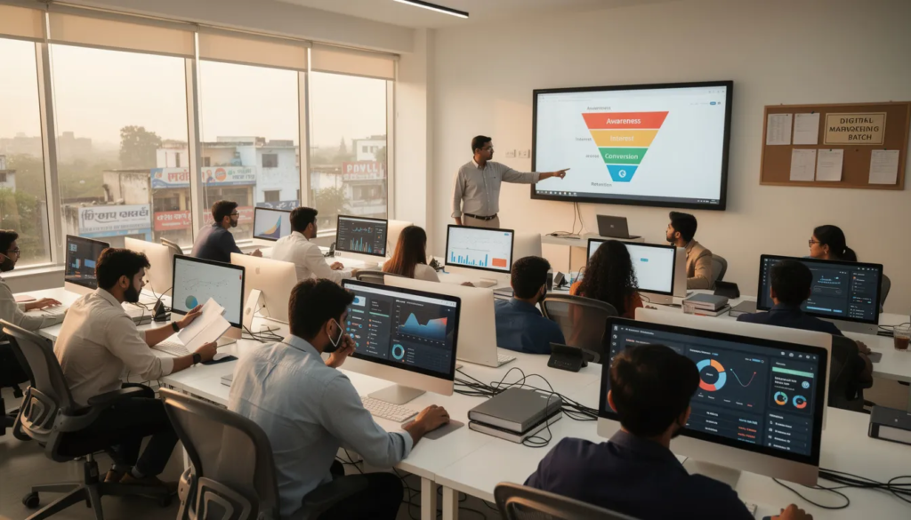Surat’s transformation from a traditional manufacturing hub to a digitally-driven business center has created unprecedented opportunities for aspiring digital marketers. As textile manufacturers, diamond exporters, and emerging startups embrace online channels, the demand for skilled digital marketing professionals has skyrocketed across the city.